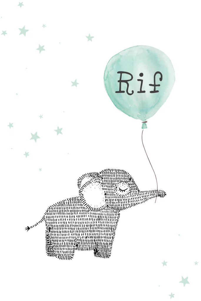 Hip geboortekaartje met lieve olifant met ballon. De olifant is met de hand getekend. Pas het kaartje eenvoudig aan in de designtool en bestel een proefdruk voor maar 1 euro.