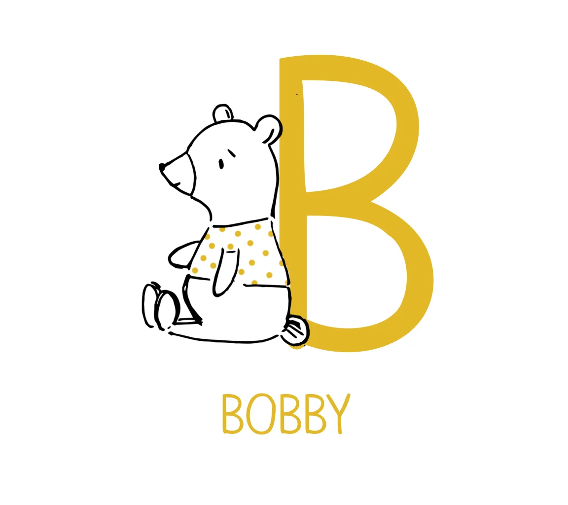 Lief en eenvoudig geboortekaartje met een beer. De beer staat tegen de eerste letter van de naam (die kun je zelf aanpassen in de designtool).