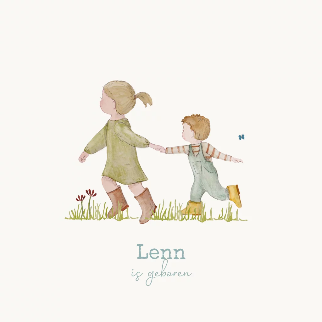 geboortekaartje broertje rennen door gras