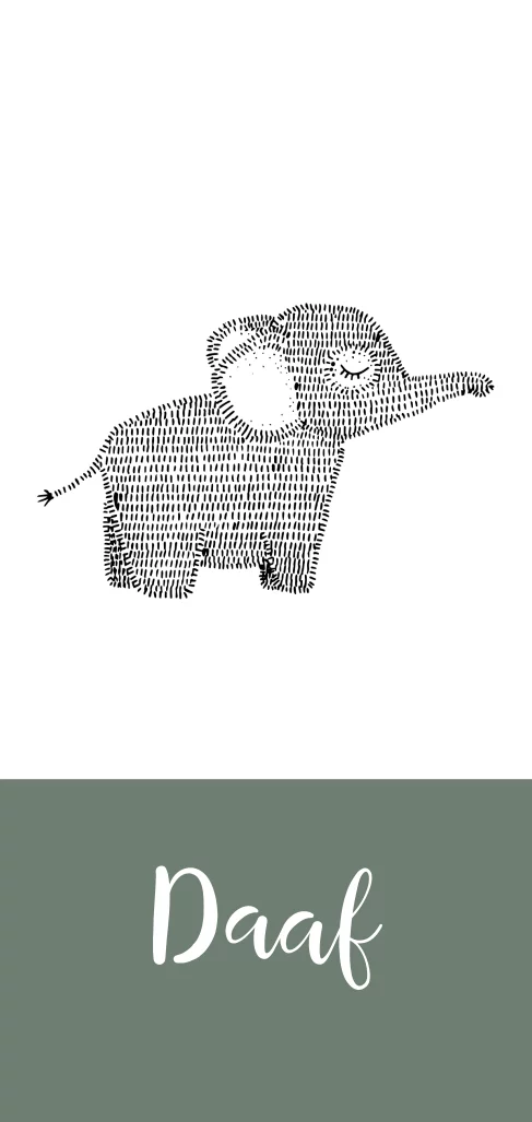 Hip geboortekaartje met lieve olifant. De olifant is met de hand getekend. Pas het kaartje eenvoudig aan in de designtool en bestel een proefdruk voor maar 1 euro.