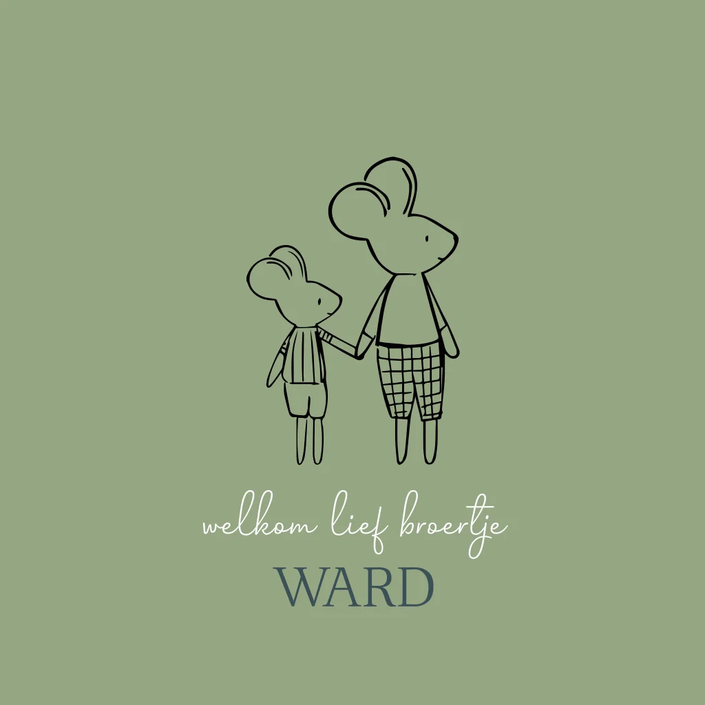 Een stijlvol kaartje voor een broertje. De twee muizen houden elkaars hand vast.