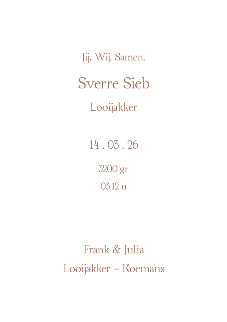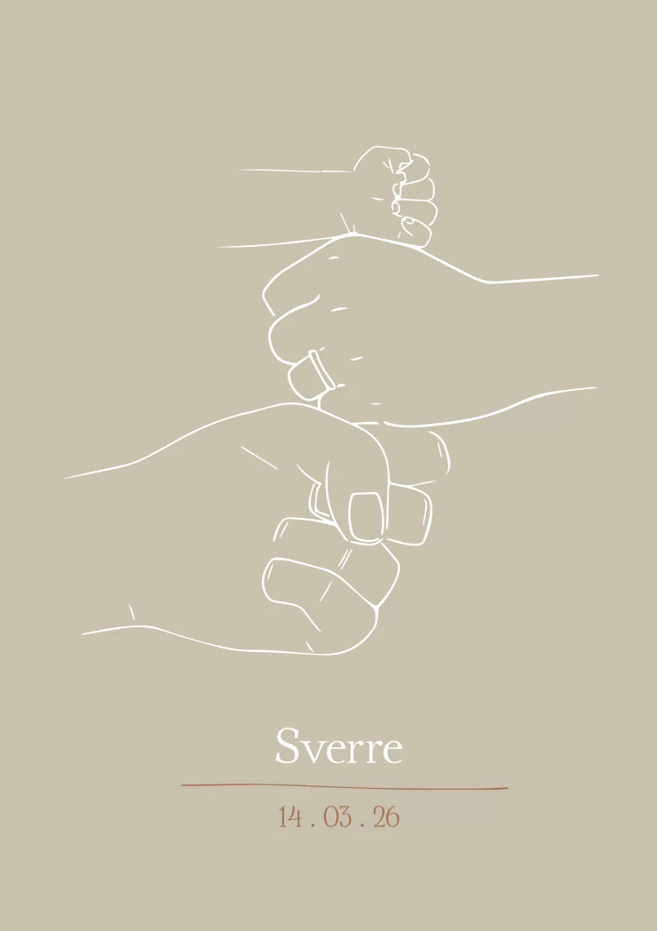 stijlvol geboortekaartje met 3 handen in lijntekening