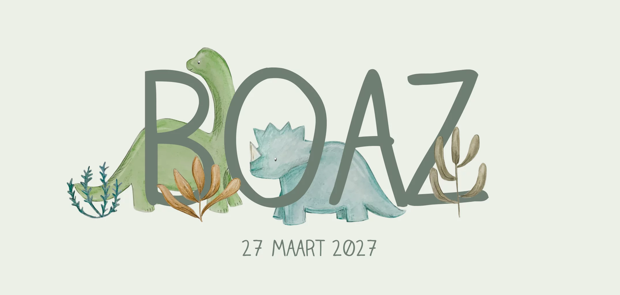 stoer geboortekaartje voor jongen met dinosaurus in pastelkleuren.
