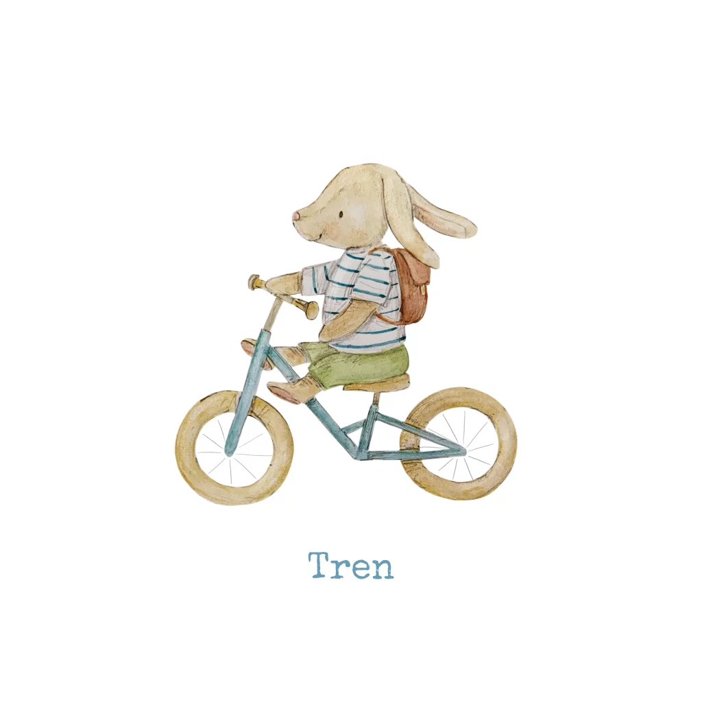 stoer geboortekaartje jongen konijn met loopfiets