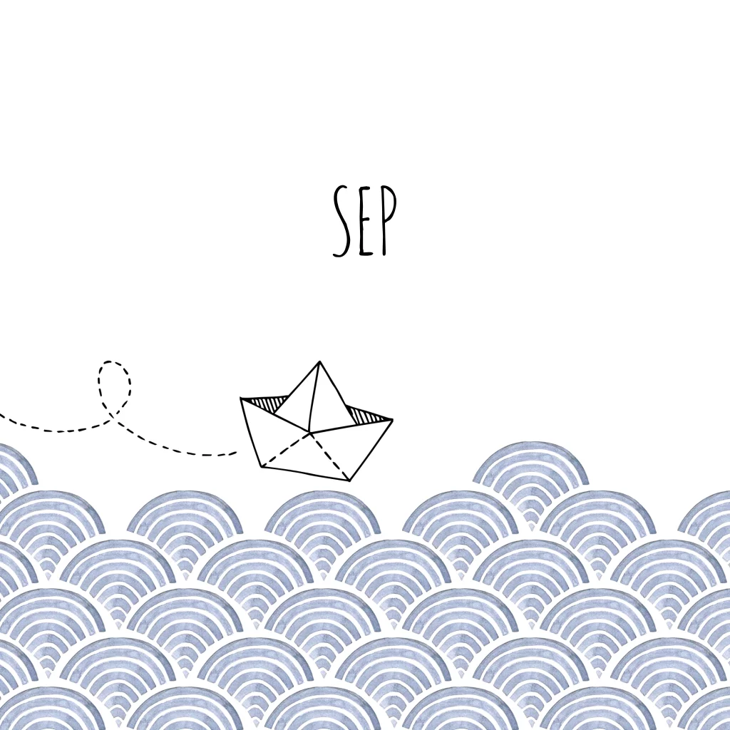 Een stoer geboortekaartje voor een jongen met de zee / water / rivier en een bootje.