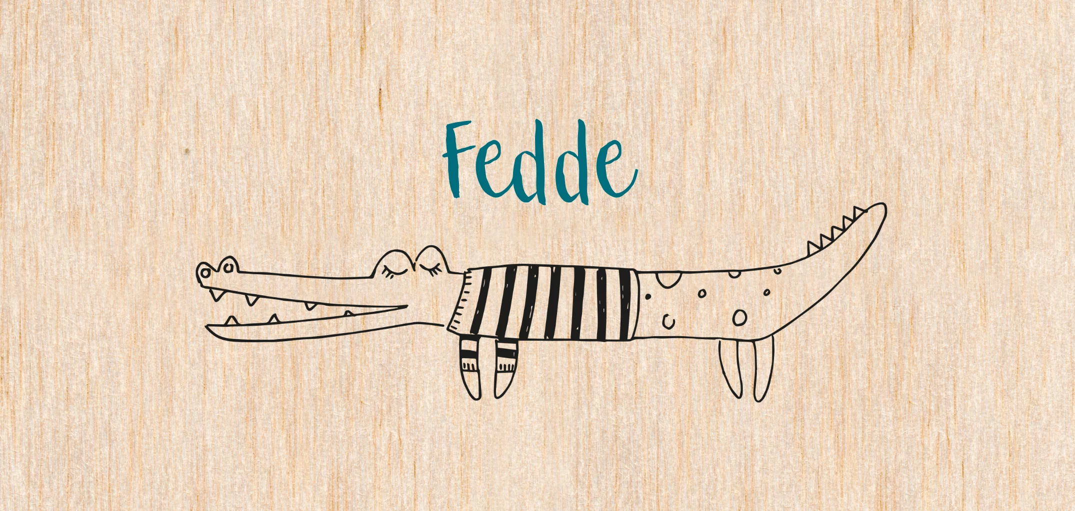Een uniek geboortekaartje met een vrolijke krokodil. De krokodil is me de hand getekend. Dit geboortekaartje wordt gedrukt op echt hout! Natuurlijk kun je ook voor een papiersoort kiezen. Wat dacht je van kraftpapier?