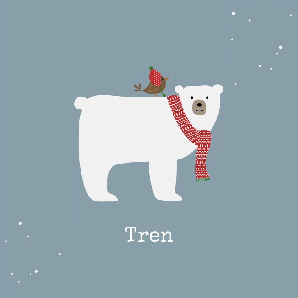 winters geboortekaartje ijsbeer en vogel jongen