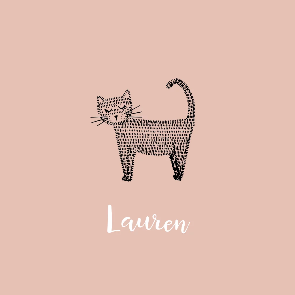 Een heel lief geboortekaartje voor een meisje met een kat en afgeronde hoeken. De kat is met de hand getekend: pentekening. Het is een eenvoudig een lief kaartje