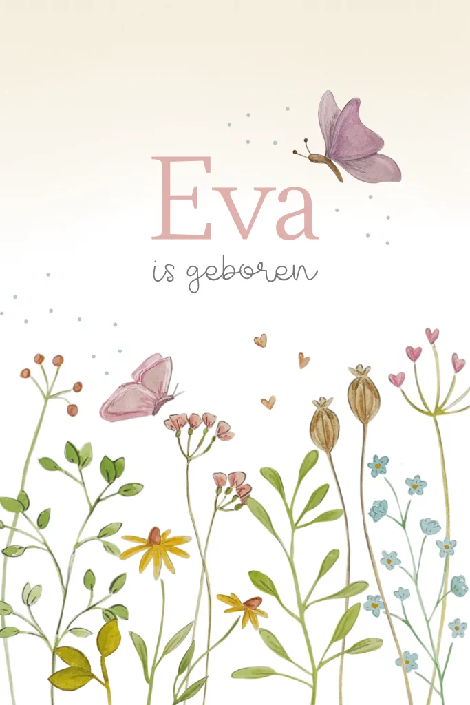 enkel geboortekaartje met bloemen voor meisje