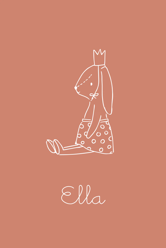 De lijntekening in goudfolie! Het lieve konijntje is met de hand getekend.