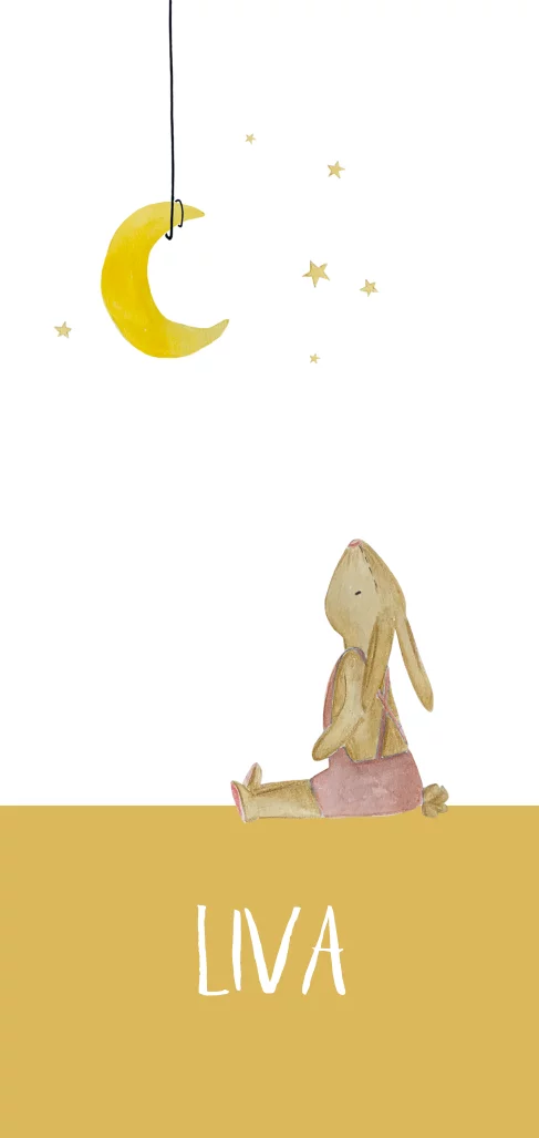 geboortekaartje met konijn en maan