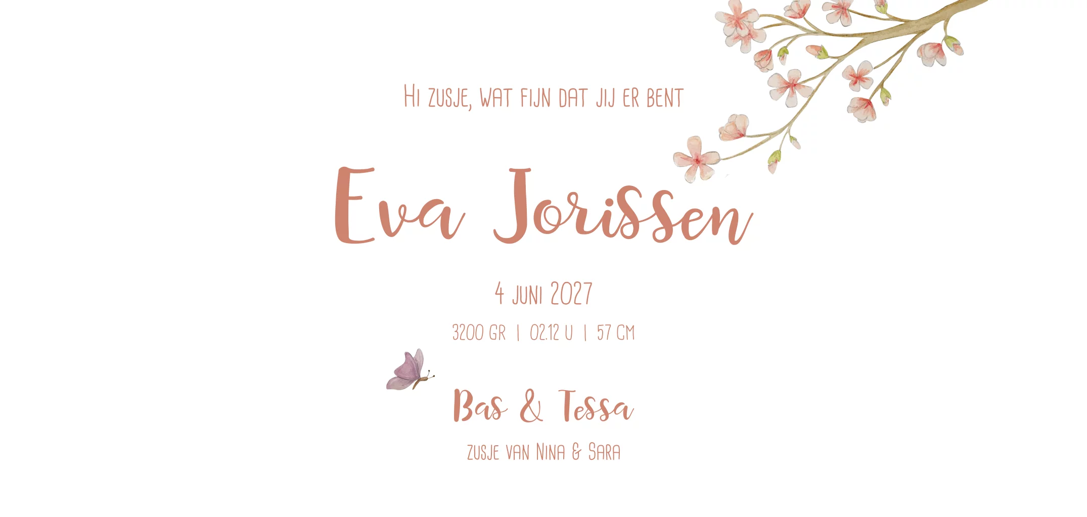 geboortekaartje lente zomer met wiegje in bos en bloemen