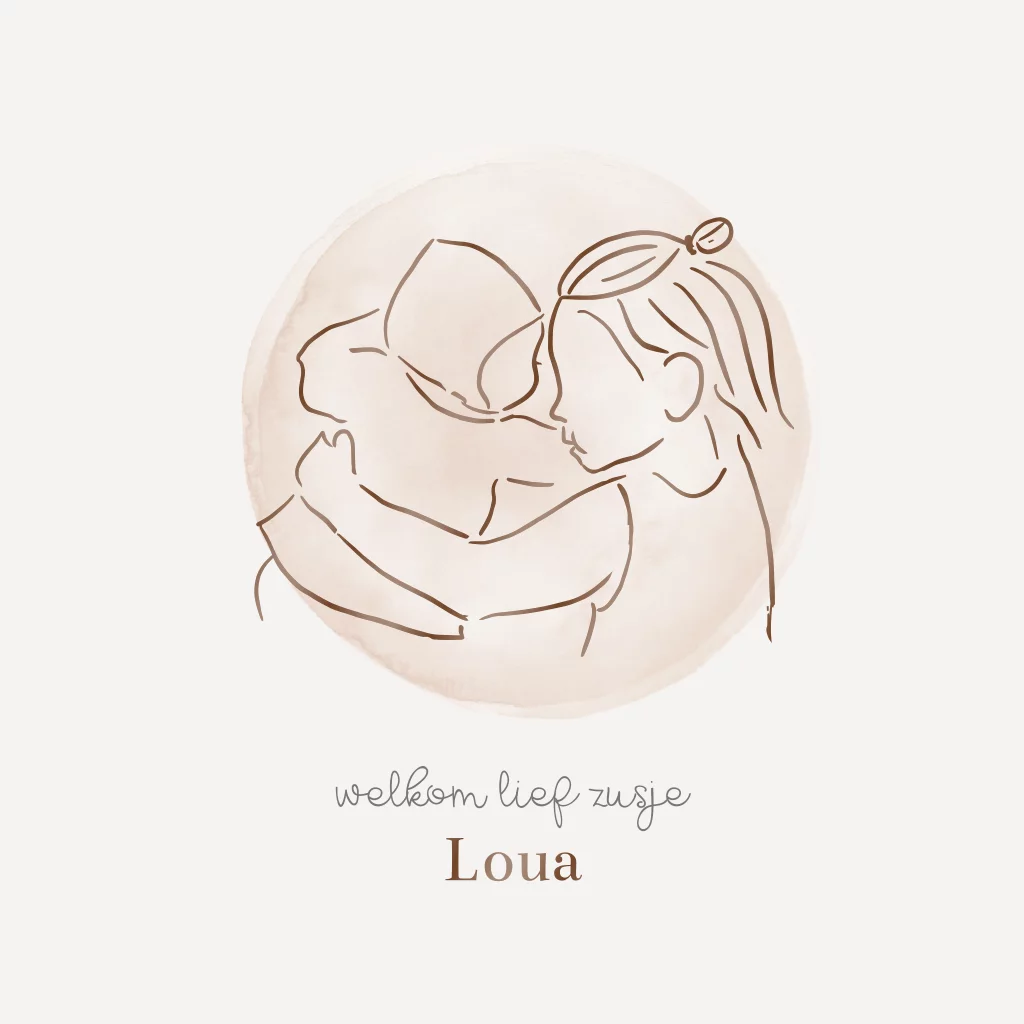 geboortekaartje lijntekening goudfolie baby en kleuter.