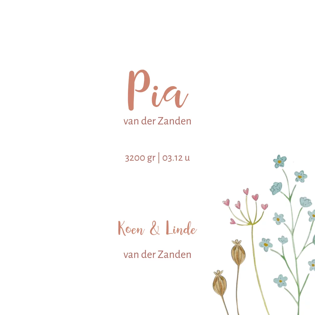 geboortekaartje met bloemen