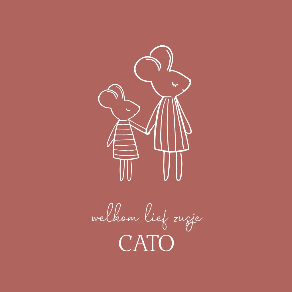 Geboortekaartje zusje met twee muisjes in goudfolie