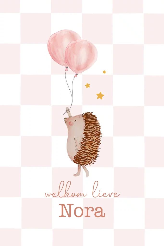 lief geboortekaartje meisje met egel en ruit achtergrond