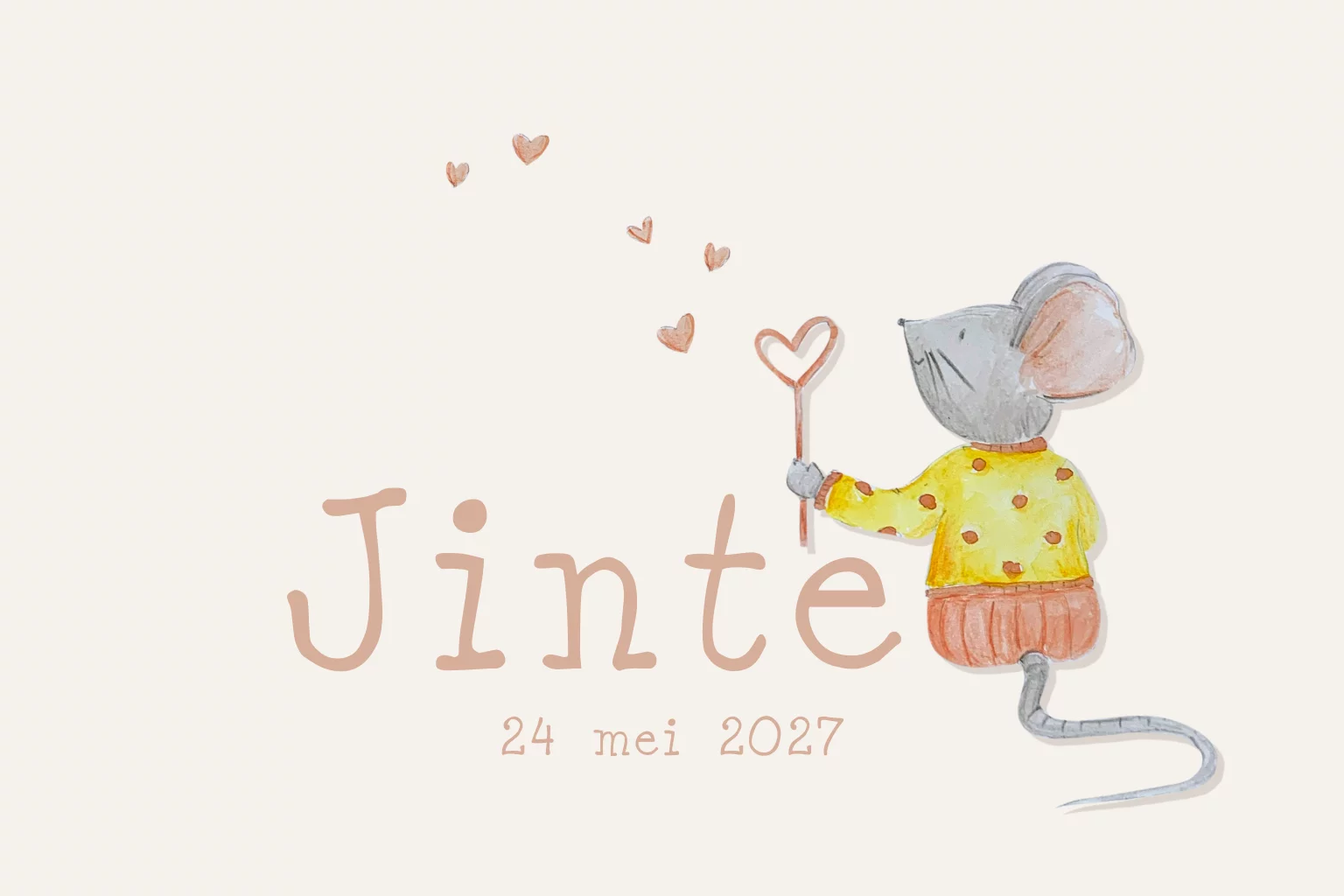 Een lief kaartje met handgeschilderde illustratie van een muis. De muis met bellenblaas in hartjes vorm.