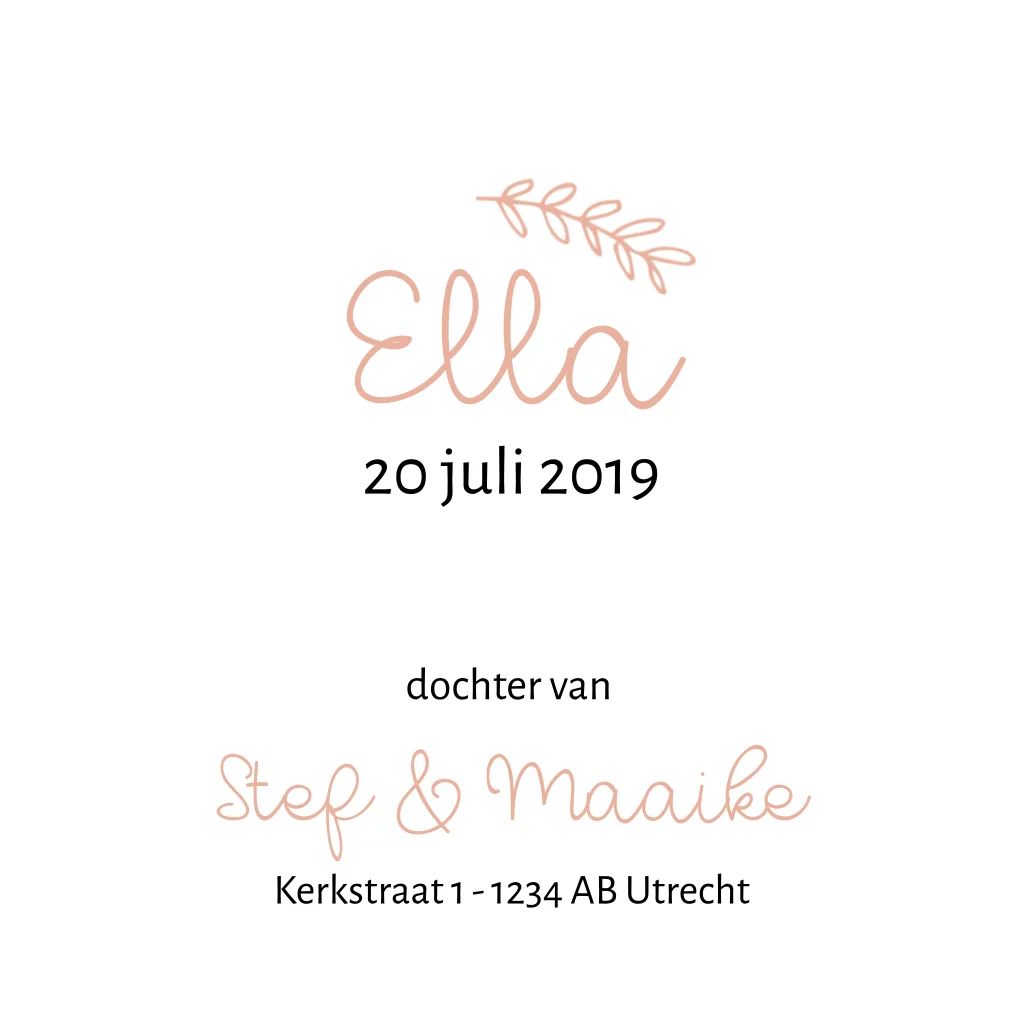 Botanisch geboortekaartje op kraftpapier. De krans met bladeren en bloemen is met de hand getekend. Dit kaartje is lief en de kaftpapier-look zorgt voor een stoerdere uitstraling. Pas het kaartje eenvoudig aan in de designtool en bestel een proefdruk voor maar 1 euro.