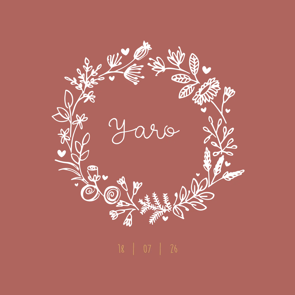 geboortekaartje bloemen krans goudfolie lijn tekening