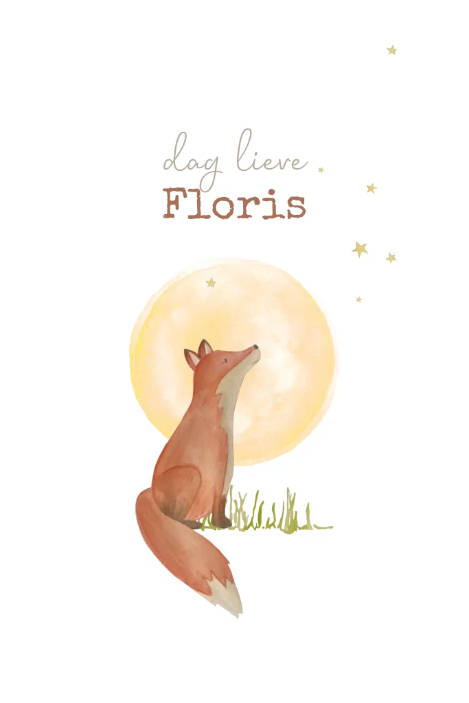 Een mooi rouwkaartje met een vos. De vos kijkt naar de maan en de sterren. Pas het kaartje zelf eenvoudig aan naar wens. Hulp of advies nodig? Neem vrijblijvend contact op.