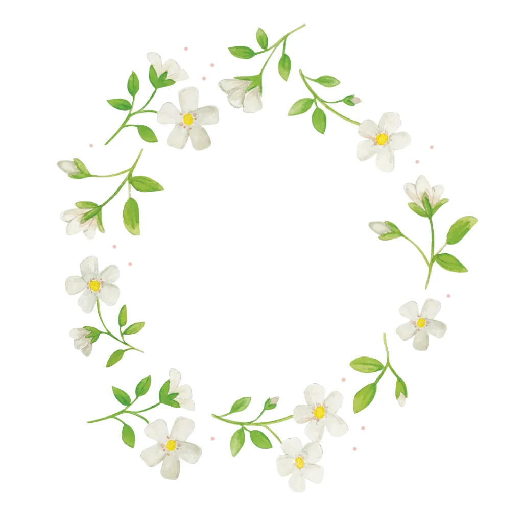 Een uniek kraamfeest kaartje met witte bloemen. De bloemen zijn met de hand getekend en geverfd.