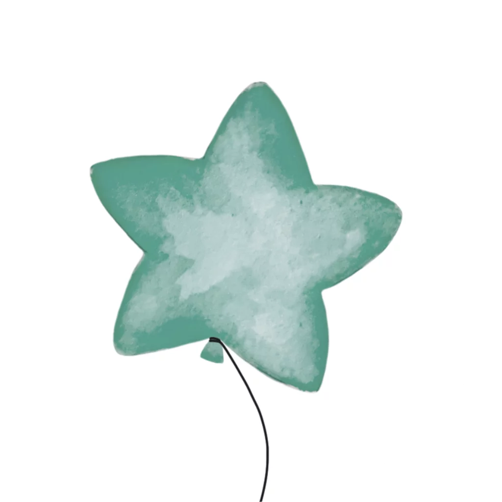 Een unieke sluitsticker met een ballon in de vorm va een ster in blauw / groen