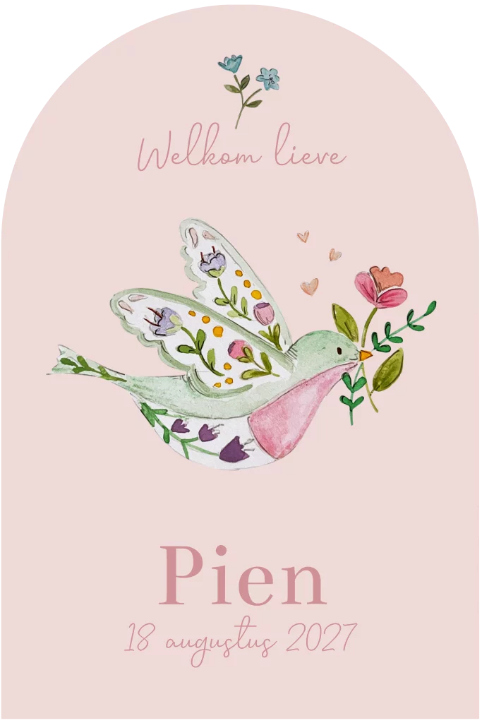 "Op zoek naar een uniek en bijzonder geboortekaartje om de komst van jullie kleintje aan te kondigen? Ontdek ons prachtige Geboortekaartje Vogel en Bloemen, verkrijgbaar als stanskaartje. Dit geboortekaartje heeft een betoverend ontwerp met een vogel omringd door bloemen, waardoor een vrolijk en natuurlijk thema ontstaat. Met dit geboortekaartje maak je een blijvende indruk en laat je de wereld weten dat jullie kindje er is!