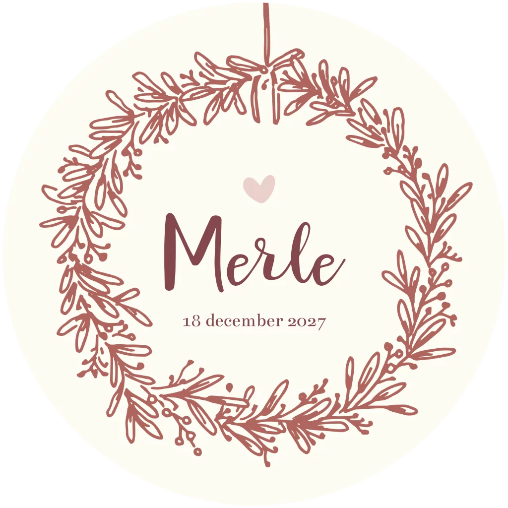 rond geboortekaartje met krans takjes en bessen