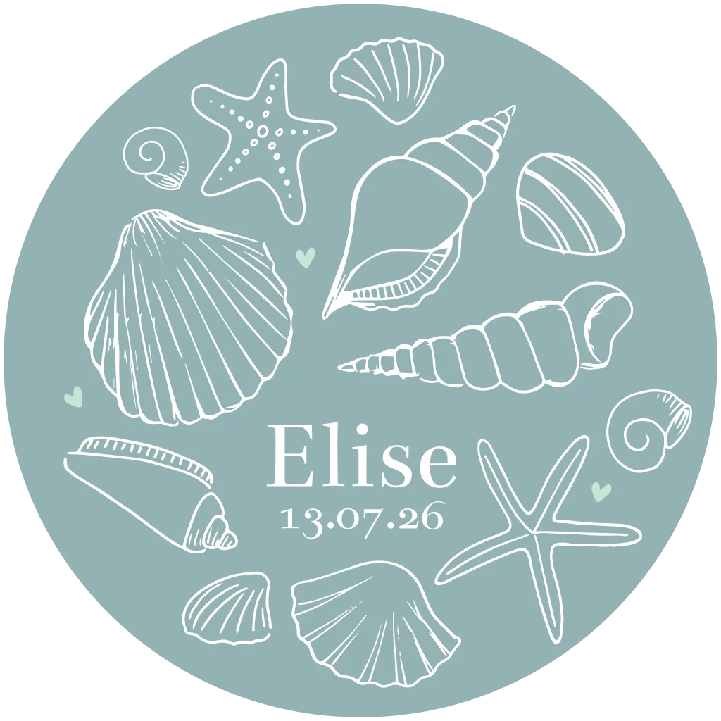 Een mooi eenvoudig geboortekaartje met verschillende schelpen.