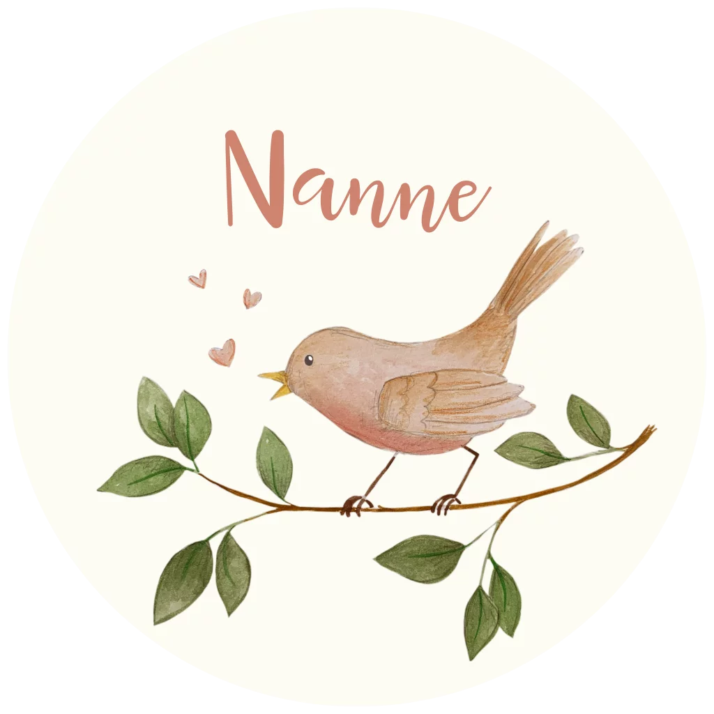Een uniek rond geboortekaartje met een vogel op een tak.