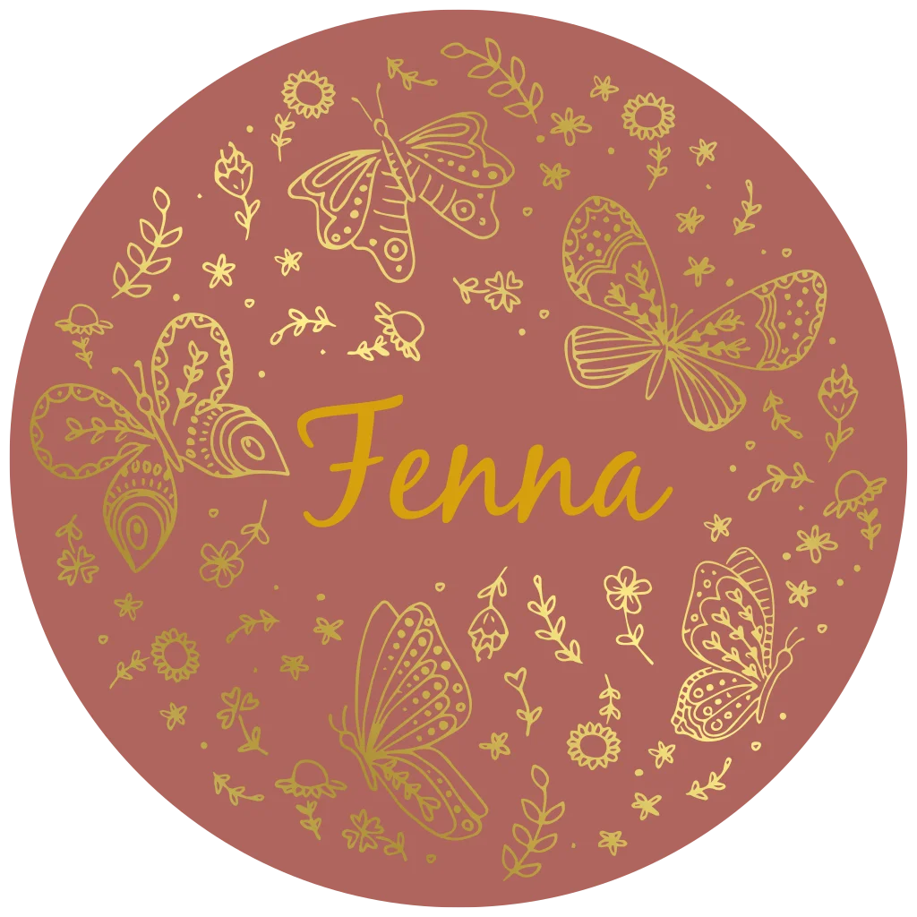 Uniek rond geboortekaartjes met vlinders in goudfolie