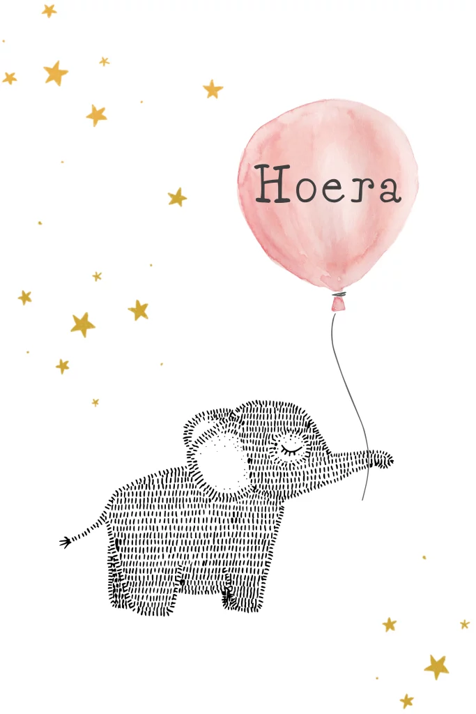 wenskaart olifant ballon roze